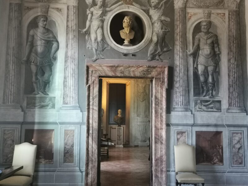During the first phase, Crispo entrusted the works to Raffaello da Montelupo and Simone Mosca, who coordinated several pre-existing buildings. From this period dates the Sala Grande, intended for ceremonial functions, and the refined Loggia Paolina or Farnesiana, adorned with a wooden ceiling featuring the papal coat of arms and the lilies of the Farnese.