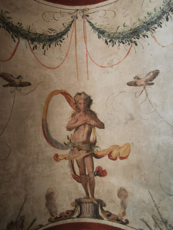 The second phase saw the expansion of the Torrazzo, designed by Tommaso Bevilacqua and Giulio Merisi da Caravaggio, and decorated by Prospero Fontana, a Bolognese Mannerist painter. After Crispo’s death, the palace passed to the Spada Veralli Potenziani family, going through a long period of abandonment.
